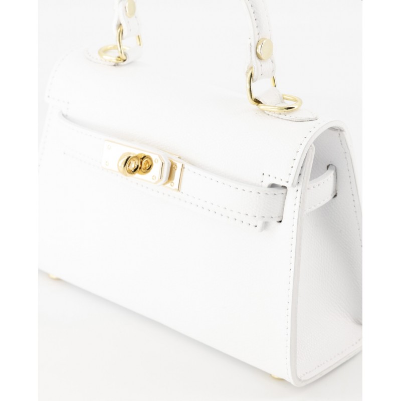 Deze prachtige leren handtas is afgewerkt met gouden details. Hij heeft een afneembaar verstelbaar hengsel waarmee je hem ook crossbody kan dragen.