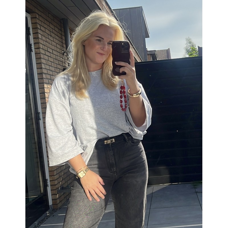 Deze leuke kanten top heeft een wat hogere hals en de mouw loopt flared uit. Hij schijnt door, maar is leuk te combineren met onze bandeau top. Maat: S/M en M/L (valt op maat). Materiaal: 100% polyester