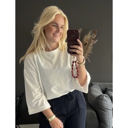 Deze leuke top is mooi afgewerkt met twee gouden knopen. Hij valt bij de mouwen wat wijder en in de taille wat strakker. De top is ook leuk te combineren met onze kanten tops. Maat: S/M en M/L (valt op maat) Materiaal: 70% viscose en 30% nylon